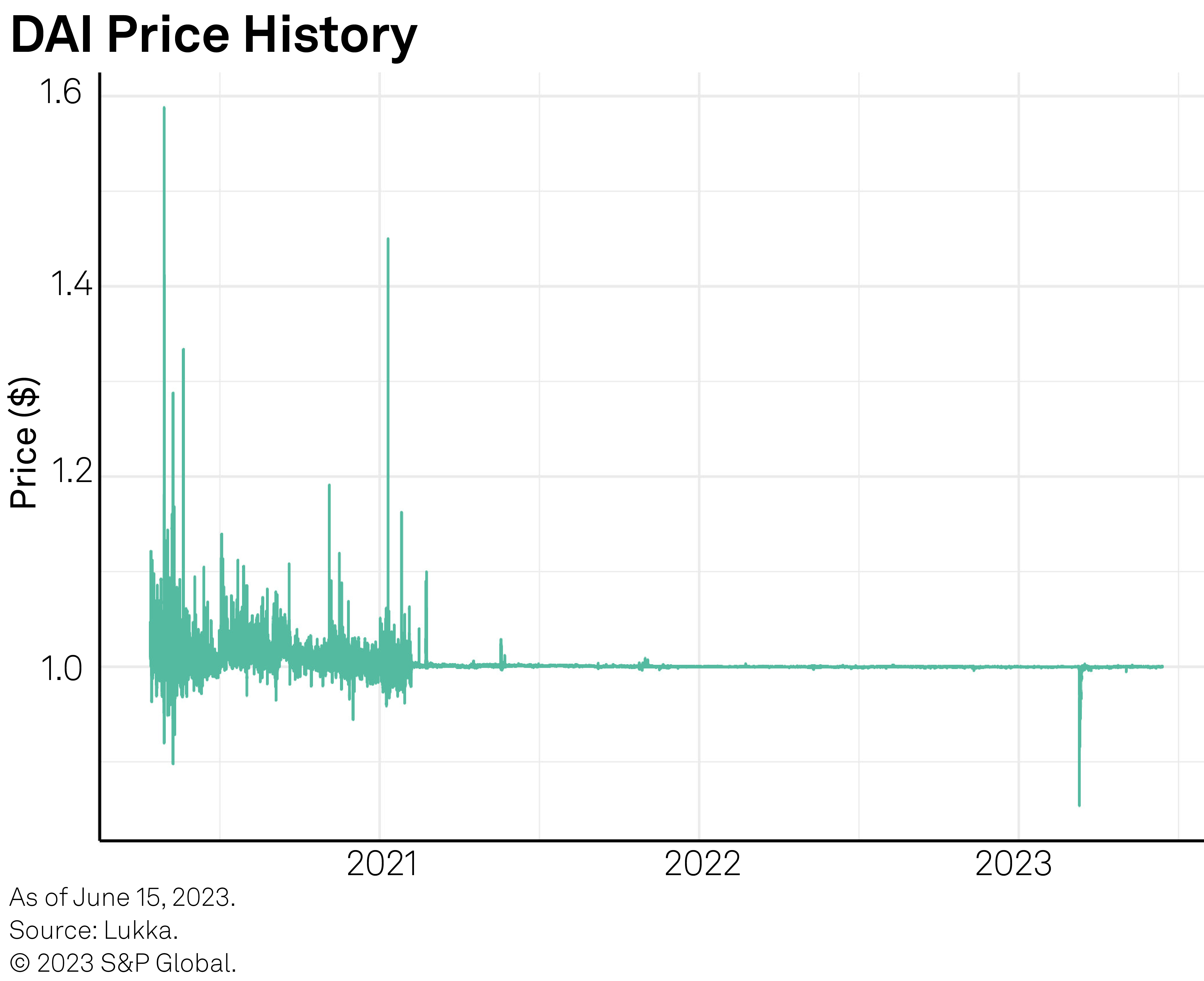 – The failure of three US banks — Silicon Valley Bank (SVB), Signature Bank and Silvergate Bank — caused both USDC and DAI to depeg.
