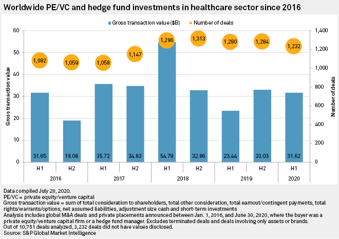 The biotechnology sector either announced or concluded 342 deals globally as of June 30, comprising mergers and acquisitions and private placements, where the main investor was either a venture capitalist, a hedge fund manager or a private equity company, according to an analysis by S&P Global Market Intelligence.